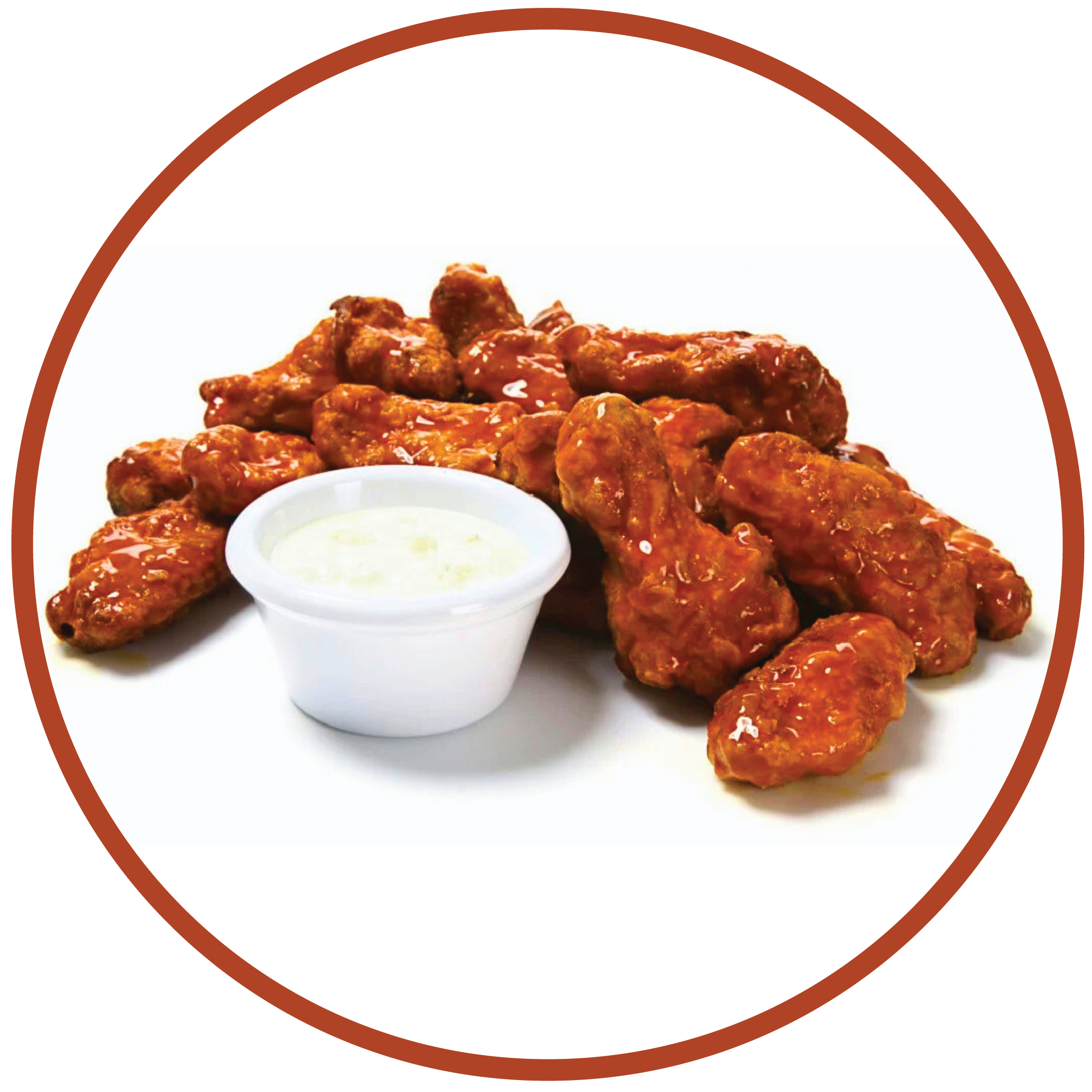 Crispy chicken wings coated in our special sauce and served with ranch or blue cheese dip.