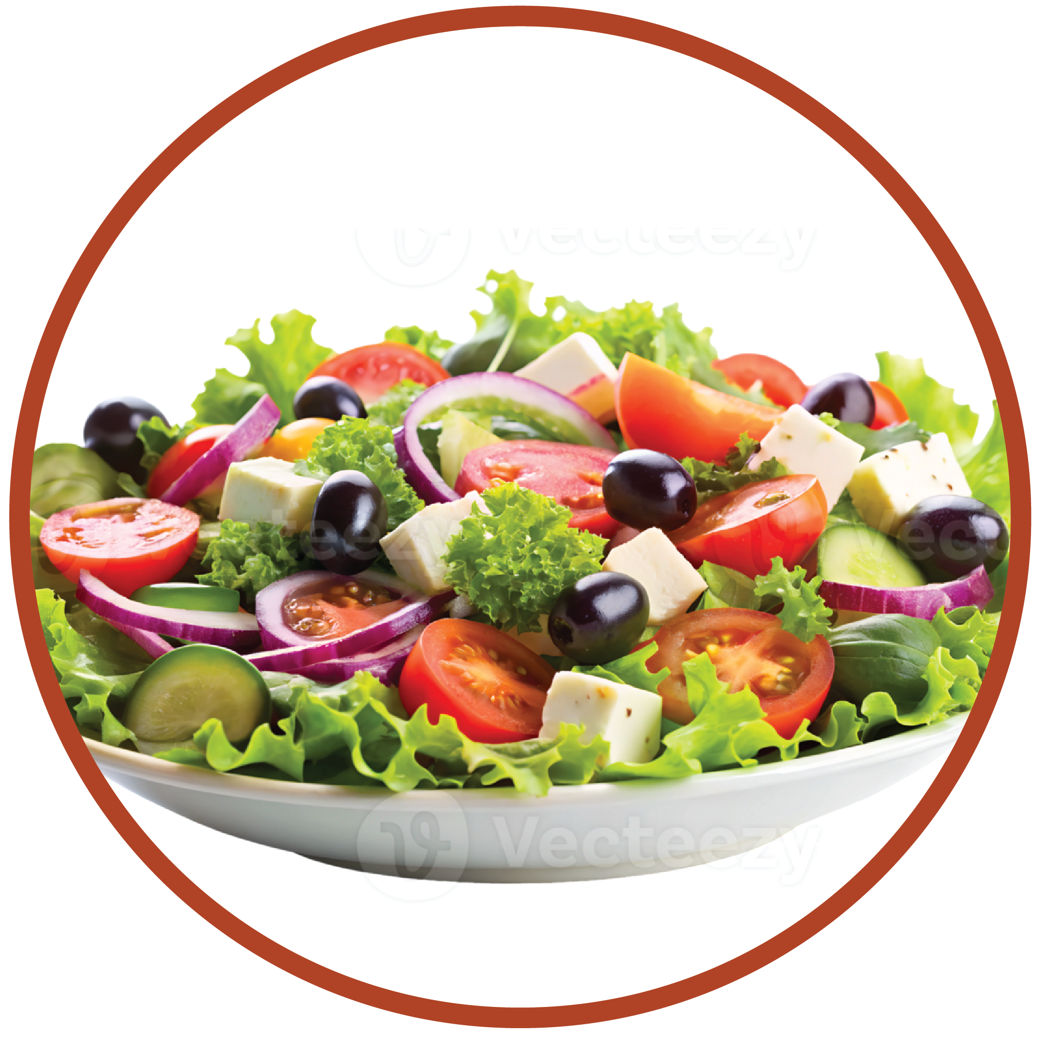 Crisp lettuce, cucumbers, tomatoes, red onions, olives, and feta cheese tossed in olive oil and lemon dressing.